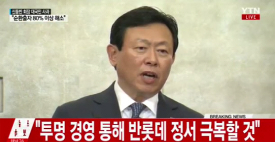 그의 대국민 사과는 그룹 경영권을 두고 신동주-동빈 형제간 다툼이 신격호-동주-동빈 3부자의 갈등으로 번져 전 국민의 관심사로 떠오르면서 국민적 반감이 고조되자 나온 것이다.