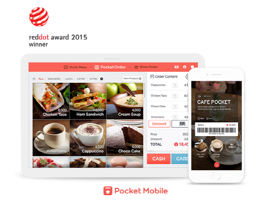 이번에 수상한 '포켓모바일' 고객용 모바일 앱과 '포켓오더' 점주용 타블릿 앱은 포켓모바일의 브랜드 핵심가치인 '만족'(Satisfaction)에 중점을 둔 디자인으로, 글로벌 커뮤니케이션에서 높은 평가를 받았다.