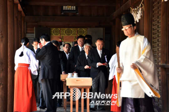 일본 '다함께 야스쿠니신사를 참배하는 국회의원 모임' 소속 여야 의원 66명은 이날 오전 도쿄도(東京都) 지요다(千代田)구의 야스쿠니 신사를 방문해 참배했다.