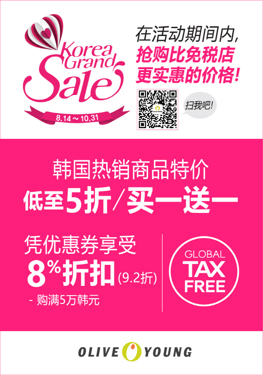 올리브영 마케팅 담당자는 "올리브영은 메르스 여파로 인해 침체된 내수 경제 활성화에 기여하고자 이번 코리아그랜드세일에 동참하게 됐다"며 "외국인 대상으로 다양한 이벤트와 특별 혜택을 제공하는 등 관광 상권이 다시 활기를 찾을 수 있도록 관광객 맞이에 만전을 기하겠다"고 전했다.