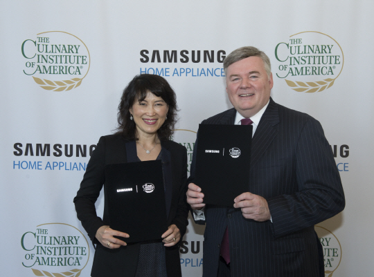 삼성전자가 18일 세계 최정상 요리 학교 중 하나인 미국 'CIA(The Culinary Institute of America)'와 전략적 제휴를 체결했다고 밝혔다. 삼성전자에 따르면 박원 생활가전사업부 전무와 팀 라이언 CIA 총장은 17일(현지시간) 미국 뉴욕 하이드파크에 위치한 CIA 뉴욕 캠퍼스에서 삼성전자와 CIA의 제휴를 위한 조인식을 가졌다. 제휴는 세계적인 셰프들로 구성된 삼성전자의 '클럽 드 셰프'와 슈퍼 프리미엄 키친 가전 '셰프컬렉션'제품에 대한 CIA의 관심과 양 측의 '요리에 대한 열정 실현'이란 공감대로 이뤄졌다. 삼성전자는 2013년 프랑스 국립 요리 학교인 '페랑디(Ferrandi)'에 이어 미국의 세계 최정상급 요리 학교와 제휴하며 유럽과 북미에서 키친 가전 트렌드를 선도할 예정이다.