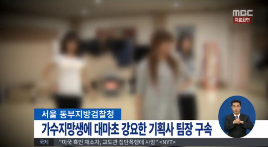 검찰에 따르면, 소규모 연예기획사에서 가수 지망생들을 훈련하는 팀장급 트레이너로 일한 정모(33)씨는 지난해 8월부터 석 달 동안 8차례에 걸쳐 회사 소속 10~20대 걸그룹 지망생 4명에게 "가수를 하려면 필요하다"면서 대마초를 강제로 피우게 한 혐의로 구속기소됐다.