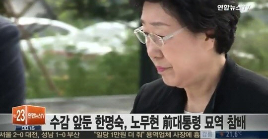 수감 앞둔 한명숙 전 국무총리가 노무현 전 대통령의 묘역을 참배했다.