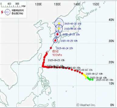 24일은 제15호 태풍 고니(GONI)가 제주도 해상에 접근해 전국이 제15호 태풍 고니 영향권에 들어 전국에 많은 비가 오겠다.