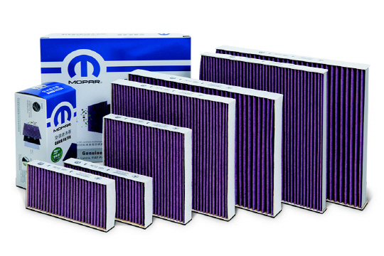 FCA의 '프리미엄 캐빈 헤파 필터'는 3중 필터로 구성되어 크라이슬러, 지프, 피아트 차량에 최적화된 강력한 미세먼지 여과, 항균 및 탈취 기능을 제공한다.