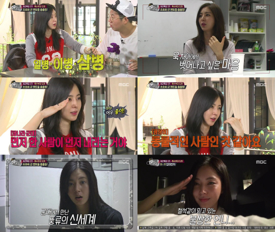 이날 입대를 앞두고 군대선배인 이규한과 김영철을 찾아간 한채아는 군대 계급을 묻는 두 사람에게 "일병, 이병, 삼병?"이라는 엉뚱한 대답을 쏟아내 새로운 군대무식자 탄생 조짐을 보였다.