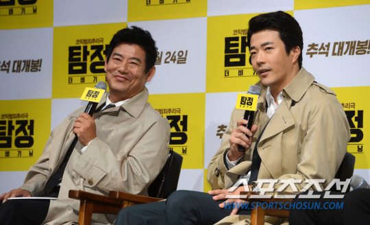 24일 오전 서울 강남구 압구정CGV에서 열린 영화 '탐정: 더 비기닝' 제작보고회에는 배우 성동일, 권상우와 김정훈 감독이 참석했다.