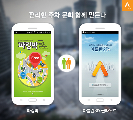 내비게이션앱 '아틀란3D 클라우드(이하 아틀란3D)'를 서비스하고 있는 전자지도 소프트웨어 전문기업 맵퍼스는 주차장 안내 앱인 '파킹박(ParkingPark)' 서비스사인 와이즈모바일과 업무제휴를 맺고 서비스 확대에 나선다고 밝혔다.