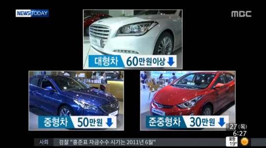개별소비세란 소위 '사치세'로 불리는 세금이다. 내일부터 반출되는 승용차의 경우 연말까지 현재 5%인 개별소비세를 3.5%까지 낮춘다. 이에 따라 대형차는 60만 원 이상, 중형차는 50만 원, 준중형차는 30만 원 가량 가격이 하락한다.