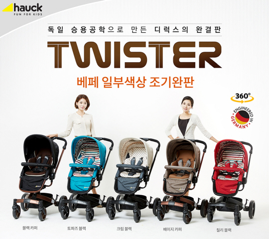 지난 6월 국내에 출시된 '호크 트위스터'는 서울 삼성동 코엑스에서 열린 28회 베페 베이비페어에서 첫 선을 보인 후 독일의 최첨단 기술력을 탑재하고 글로벌 품질기준을 충족하면서 합리적 가격대의 디럭스 유모차로 큰 주목을 받았다. 호크 트위스터 유모차는 '원터치 핸들 락킹 버튼'으로 허리를 굽히지 않고도 초간편 양대면 회전을 구현한 '360도 트위스트 시스템'을 갖추고 있다. 주행 시 흔들림과 바퀴의 진동을 잡아 안전한 핸들링이 가능한 'T-Bar 프레임', 시트와 프레임의 결합력을 높여 안정성을 더한 '스퀘어락 시스템', 노면의 충격을 효과적으로 흡수·분산시키는 '4-wheel 서스펜션' 기능 등이 결합돼 완성된 3단계 주행 락킹 시스템 등을 구현한다.
