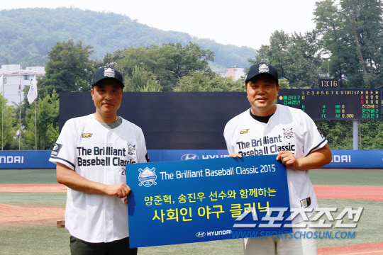 현대자동차㈜가 '더 브릴리언트 베이스볼 클래식 2015'의 본격적 대회 진행을 기념해 오는 20일 신월야구공원(서울 양천구 소재)에서 '양준혁ㆍ송진우 선수와 함께 하는 사회인 야구 클리닉'을 개최한다고 1일 밝혔다.