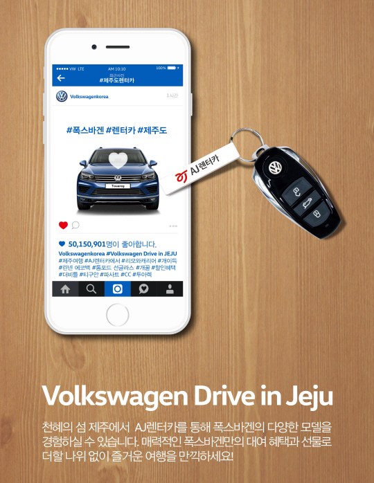 AJ렌터카가 폭스바겐과 함께하는 공동프로모션으로 제주지점에 올해 신규 도입한 '폭스바겐 전 차종 할인 및 경품이벤트'를 1일부터 2달간 실시한다.