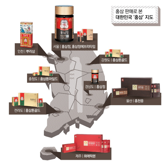 제주도와 인천은 요우커가 한국 방문시 이용하는 인천공항과 제주공항이 위치한 도시로 공항과 시내에 대형 면세점이 자리를 잡고 있어 중국 관광객들이 좋아하는 정관장 '뿌리삼'의 매출이 가장 높은 지역으로 나타났으며, 최근 중국인들에게도 관심이 높은 녹용이 함유된 제품인 '천녹삼'과 프리미엄 홍삼 제품으로 선물용으로 인기 높은 '황진단'제품도 이 2곳의 판매가 1~2위를 다투고 있다.
