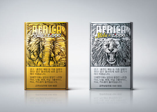 7일 KT&G에 따르면 한정판은 기존에 판매되던 '디스 아프리카 룰라'와 '디스 아프리카 몰라'의 맛은 그대로 유지하되, 메탈 느낌의 패키지에 포효하는 사자와 코끼리를 그려 넣어 아프리카 특유의 야성미를 세련된 느낌으로 표현했다.