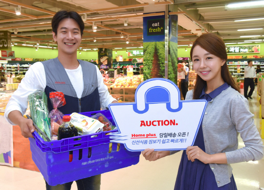 옥션 홈플러스 당일배송관은 신선식품 배송 시 점포에서 바로 냉장 배송해 신선도를 지키고 오후 4시 이전 주문 고객을 대상으로 당일 배송 서비스를 지원한다. 주문한 상품이 품절될 경우 더 좋은 상품으로 배송하는 서비스도 제공한다. 이외에도 평일·주말 10시~22시 사이 2시간 간격으로 배송시간 예약이 가능하며, 홈플러스 배송지점별 상이한 재고여부·가격·행사 등도 확인할 수 있다.