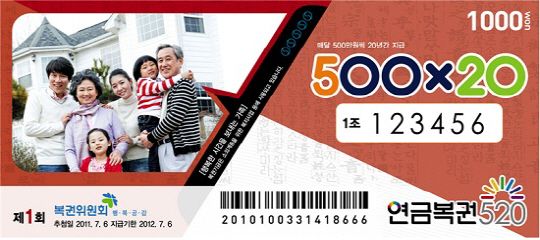 연금복권 219회 1등에게는 20년간 매달 500만원씩 12억원 분할당첨금이 지급된다.