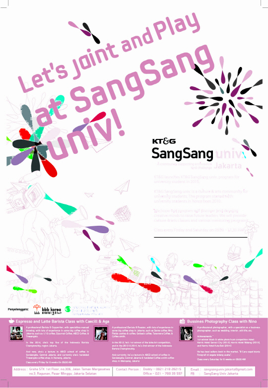 KT&G는 올해부터 이를 인도네시아로 확대해, 자카르타 현지 대학생들에게 다양한 문화강좌와 교류의 기회를 제공할 계획이다. 교육과정은 커피 제조과정을 실습하는 '바리스타 클래스'와 사진 기초강좌인 '포토 클래스' 2개로 구성되었으며, 현지 유명강사를 초빙해 각 클래스별로 6주간 수업을 진행할 예정이다. 운영 수익금은 전액 현지 대학생들을 위한 장학금 등으로 활용된다.