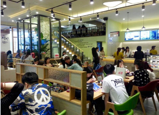 설빙의 중국 상해 1호점. 평일 오후인데도 불구하고 매장에 다양한 연령대가 자리를 가득 채우고 있었다.
