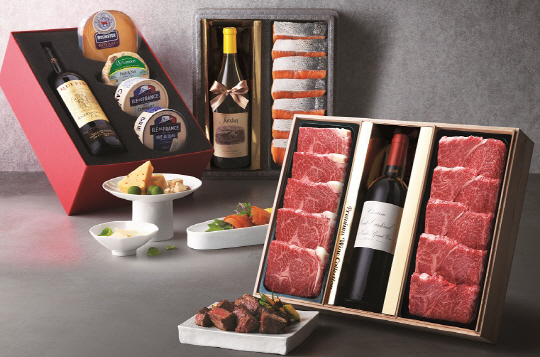 와인+수산 세트는 생연어(800g, 노르웨이산), 훈제연어(450g, 노르웨이산), 활랍스터 2마리(마리당 450g내외, 미국산) 중 1가지를 선택한 후 수산물에 어울리는 와인 2종 중 1가지를 선택해 세트를 구성할 수 있다. 와인은 죠단 샤도네이(미국산 5만6800원), 도멘 드루앵 피노누아(미국산 4만9800)로 세트 가격은 구성품에 따라 6만~9만원 선이다. 세트에 들어가는 와인은 이마트 와인 바이어가 식재료와 가장 잘 어울리는 와인을 엄선한 것이다.