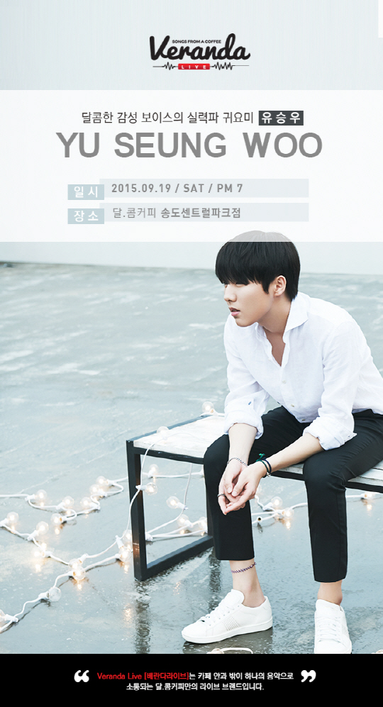 유승우의 베란다 라이브 무대는 19일 오후 7시 달콤커피 인천 송도 센트럴파크점에서 열릴 예정이다. 해당 매장에서 오전 8시부터 음료를 구매한 고객에 한해, 선착순으로 배포하는 번호표를 소지하면 누구나 참석이 가능하다.