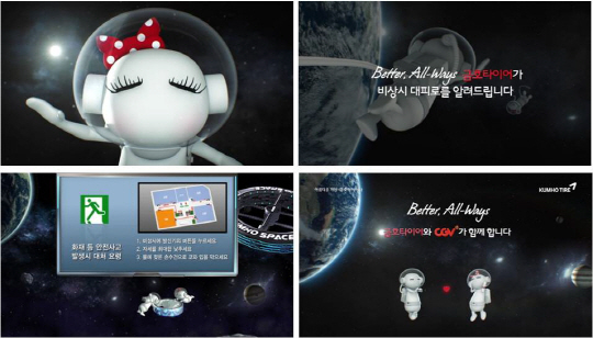 금호타이어가 전국 CGV 영화관에 신규 비상대피도 안내광고 '우주비행사' 편을 선보였다.