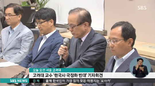 고려대 교수들은 국정 역사교과서를 현재 극소수 특수한 국가만 시행한다고 지적하면서 한국사 교과서 국정화를 추진하는 정부에 교육에 정치 논리를 들이대지 말고 획일화한 시각을 미래 세대에게 주입하지 말라고 요구했다.