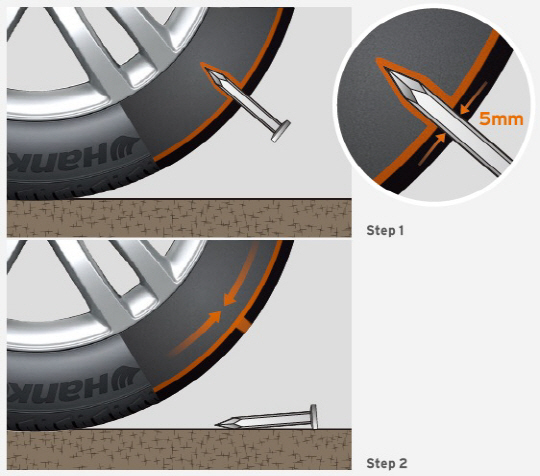 한국타이어의 실가드 타이어는 외부 충격으로 인해 펑크가 발생하더라도 내부에 도포된 점성이 있는 특수 봉합제인 실란트(Sealant) 물질이 즉각적으로 균열을 메워 내부 공기가 밖으로 유출되지 않는다. 지름 5㎜까지는 즉각적으로 봉합할 수 있어 펑크 상황에서도 지속적인 주행이 가능하다.