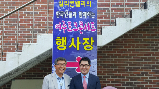 14일에 진행된 여주토크콘서트 행사장에서 원경희 여주시장(왼쪽)과 제이비컴퍼니(주) 배재준 대표
