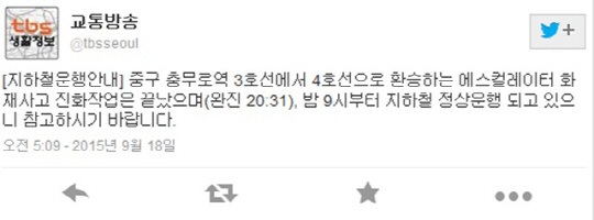 연기는 4분만에 완전히 꺼졌고, 사고 수습 과정에서 3호선과 4호선 열차는 30분간 충무로역에 정차하지 않고 통과했다.