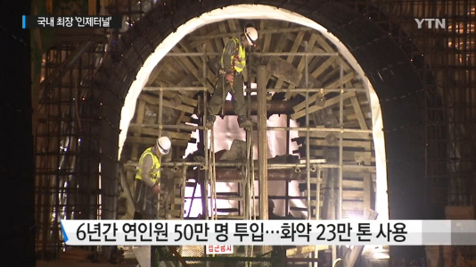 백두대간 지하 관통 인제터널은 착공 6년 만에 터널 굴착을 마친 상태로 72%의 공정률을 보이고 있다.