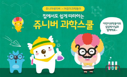 쥬니버 과학스쿨 1기 참가 신청은 오는 30일까지 쥬니버 참가 페이지(http://study.jr.naver.com/school/science/index.nhn)를 통해 가능하다. 쥬니버는 5세 이상 아이들을 대상으로 8~10명 내외를 선발할 예정이다. 첫 오프라인 수업은 내달 16일 네이버 그린팩토리에서 진행된다.