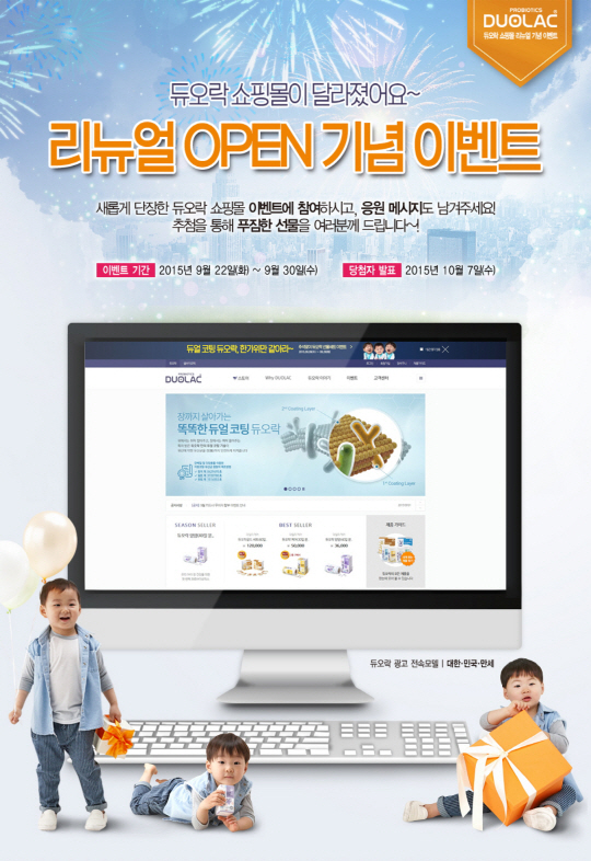 프로바이오틱스 유산균 전문기업 ㈜쎌바이오텍(대표 정명준)이 '듀오락 브랜드 데이'인 9월 말까지 자사 온라인 쇼핑몰인 '듀오락몰(www.duolac.co.kr)' 리뉴얼 오픈을 기념해 다양한 이벤트를 진행한다.