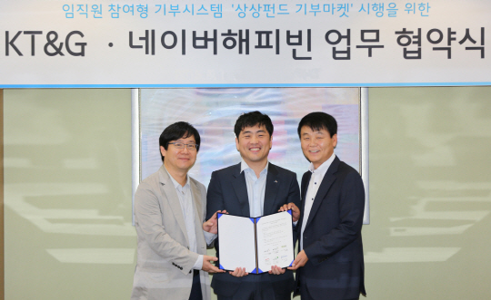 KT&G는 앞으로 기부마켓과 기부청원제 운영을 통해 '임직원 참여형' 기부문화 조성에 본격 나설 계획이다. KT&G 관계자는 "기금만 내는 것이 아니라 기부 과정에도 적극 참여하는 문화 조성을 통해 임직원들의 참여의식과 만족도가 높아질 것으로 기대된다"며, "이번 네이버 해피빈과의 협업을 계기로 앞으로도 새로운 시도를 통해 보다 차별화된 사회공헌 활동을 전개해 나가도록 노력하겠다"고 밝혔다.