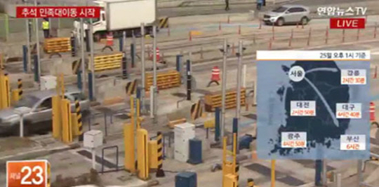 도로공사는 오후 2시께까지 차량 23만대가 서울을 빠져나갔고, 자정까지 모두 47만대가 서울을 벗어날 것으로 예상된다고 밝혔다.