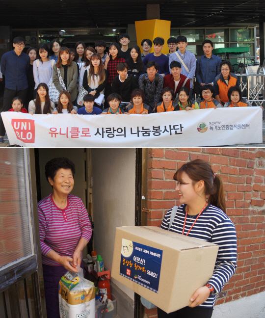 봉사단원들은 지난 15일부터 23일까지 4회에 걸쳐 근무 매장이 속한 지역별로 독거노인을 방문해 각종 식자재와 식료품이 포함된 추석 선물 상자와 손편지를 전달했다. 이번 행사엔 서울 경기, 대전 지역에 근무하는 유니클로 직원 70여 명이 함께 했다.