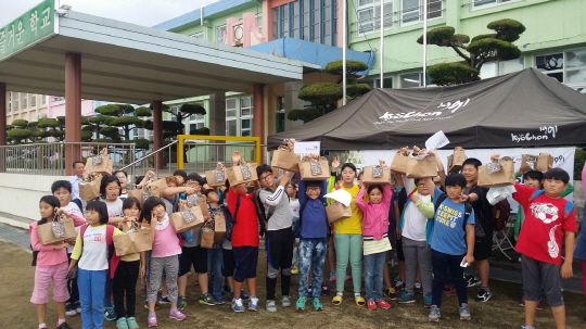 교촌에프앤비㈜가 30일 추석을 앞두고 전라남도 장흥에 위치한 장평초등학교에서 '행복나눔 시식행사'를 진행했다고 밝혔다. 교촌에프앤비에 따르면 행복나눔 시식행사는 올 3월부터 시작, 지리적 특성상 교촌치킨을 이용하기 힘든 지역에 직접 찾아가 무료시식 행사를 펼치는 연중 나눔 캠페인으로 월 2회씩 진행하고 있다. 장평초등학교에서 펼쳐진 시식행사에서는 학생과 재직교사 등 총 90여명에게 살살치킨과 웨지감자, 샐러드 등을 제공했다.