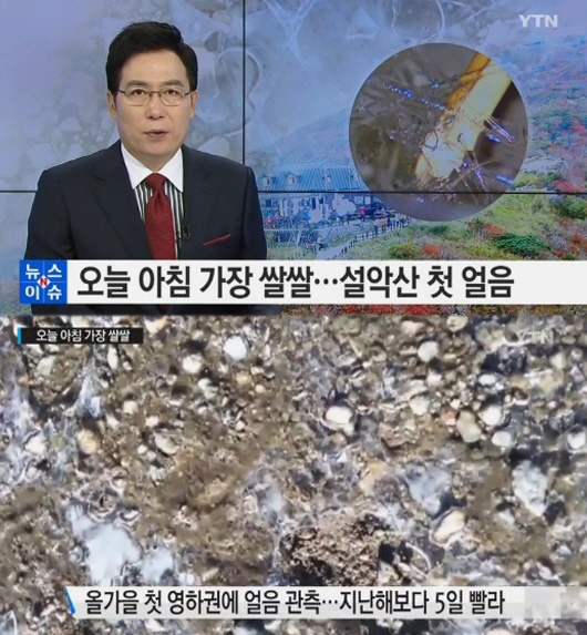 설악산에 첫 얼음이 관측됐다.