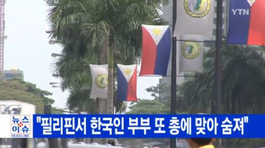 앞서 8월 19일에는 칼라바르손 인근에 있는 카비테주 실랑 마을의 가정집에서 한국인 교민 나모(64) 씨와 부인 김모(60) 씨가 괴한의 총격을 받고 숨졌다.