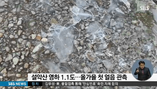 올해 가을, 설악산에 첫 얼음이 관측됐다. 작년 대비 5일 빠르다.