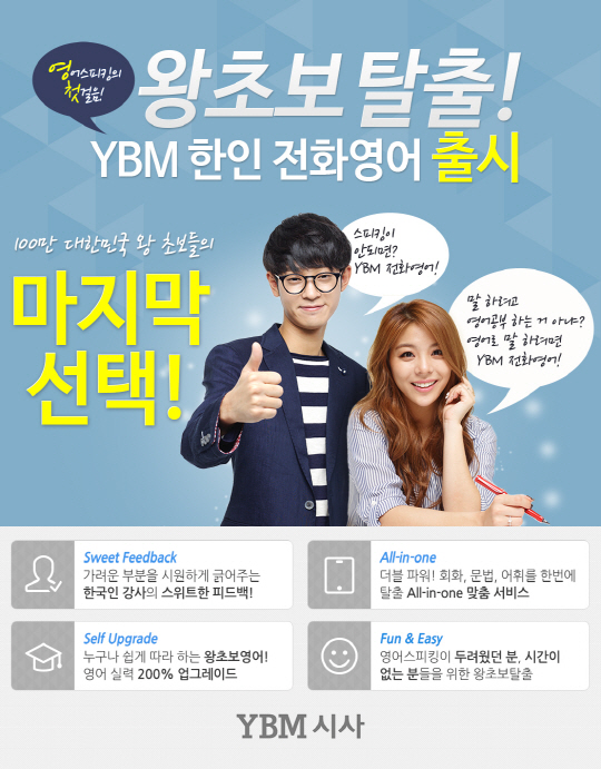 '딱맞춤 교육' YBM시사(대표 최재호)가 영어 스피킹 왕초보 탈출을 위한 한인 전화영어 프로그램을 새롭게 선보이며 전화영어 라인업 강화에 나섰다.