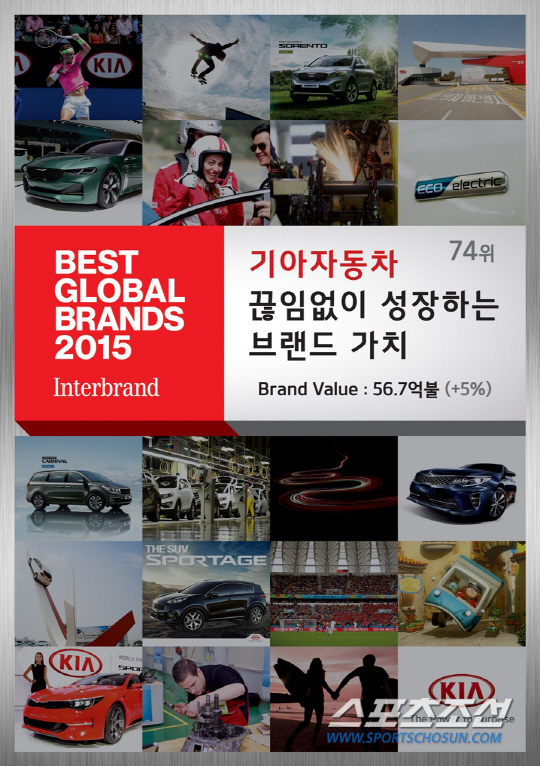 인터브랜드 관계자는 "기아차의 지속적인 브랜드가치 성장은 글로벌 시장에서 뛰어난 디자인, 우수한 품질, 혁신적 기업 이미지를 구축한 결과로 보인다"며 "특히, 강력한 SUV라인업을 앞세운 한국 시장에서의 브랜드 개선 결과가 놀랍다."고 말했다.