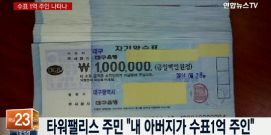 경찰은 타워팰리스 입주민 A씨는 수표 주인이 함께 사는 자신의 아버지라면서 외국에 있는 아버지에게 급히 연락을 받고 대신 와서 신고하는 것이라고 말했다고 전했다.