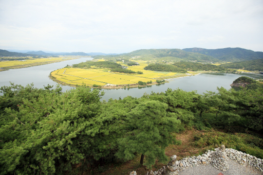 황금 들판 사이 굽이치는 낙동강을 바라보다, 상주 경천대(경북 상주시 사벌면 경천로)