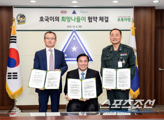 기아자동차㈜는 6일 육군본부에서 기아차 이일섭 상무, 육군 김해석 소장, (사)그린라이트 김선규 회장 등 관계자들이 참석한 가운데 '호국이의 희망나들이 사업 협약식'을 가졌다고 밝혔다.