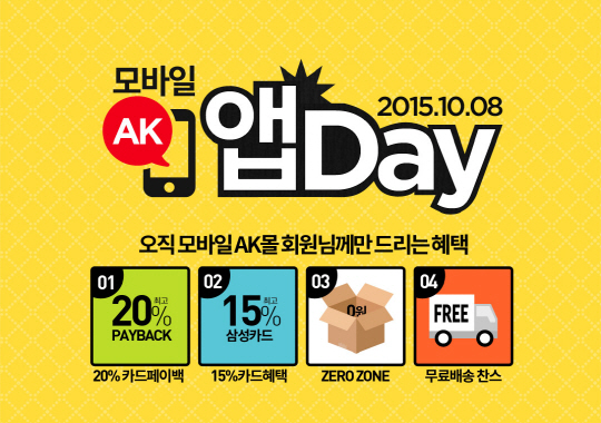 AK플라자가 운영하는 종합온라인쇼핑몰 AK몰(www.akmall.com)은 한글날 연휴를 맞아 8일부터 11일까지 '모바일 앱데이즈' 행사를 진행한다.