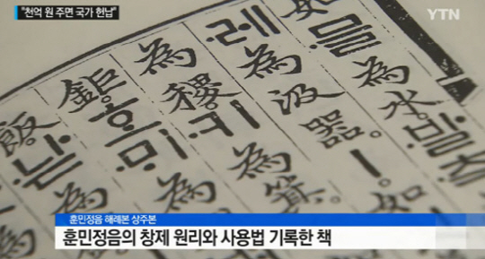 훈민정음 상주본 소장자 “1천억 주면 국가에 헌납 하겠다”