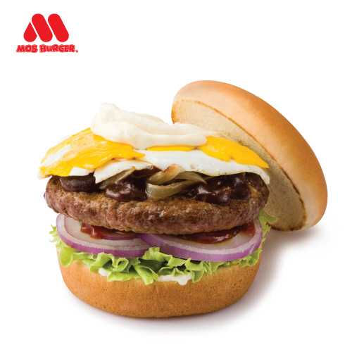 와규 함바그는 모스버거의 시그니처 메뉴인 와규 버거 시리즈 중 하나로 고소한 육즙의 호주산 와규 패티 위에 달큰하게 볶은 양파, 철판에 갓 구워낸 계란 프라이, 깊은 풍미의 데미그라스 소스를 얹은 복고풍 프리미엄 버거다.