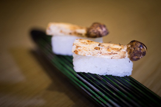 자연송이 황제코스(30만원)은 전채, 생선회, 자연송이구이, 자연송이 주전자찜, 자연송이와 전복 버터구이, 자연송이와 새우튀김, 자연송이와 생선초밥, 계절과일 등을 맛볼 수 있다. 봉사료 및 부가세 포함. (02)317-3240