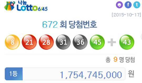 로또 672회 당첨번호