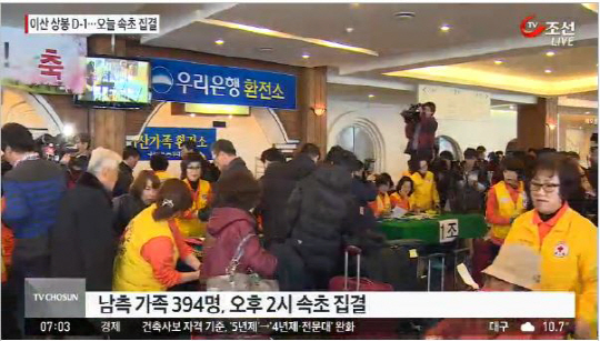 이들은 2박3일 동안 6차례에 걸쳐 북측 96가족과 만날 예정인데 상봉 행사는 단체상봉-환영만찬-개별상봉-공동중식-단체상봉-작별상봉 순서로 각 2시간씩 진행되며 상봉 일정 마지막 날인 22일 오전 9시30분 시작되는 작별상봉과 개별식사를 끝으로 귀환길에 오른다. <스포츠조선닷컴>